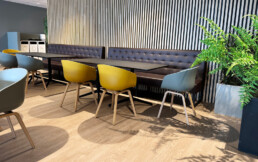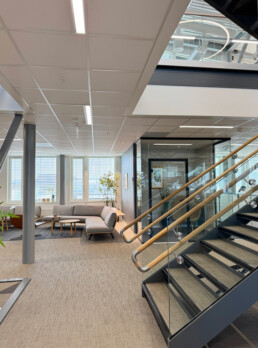 Et fullverdig kompetansehus med smarte løsninger som viser at de er åpne, inkluderende, nære og modige. Ansatte og besøkende blir møtt med varme og åpenhet allerede i resepsjonen – materialvalg og utforming bidrar til dette – i tillegg til et smil fra resepsjonisten.