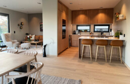 Nå har familien flyttet inn, og huset har blitt et hjem som oppleves sammenhengende og gjennomtenkt – et drømmehjem som er tilpasset dem. De gode løsningene danner rammen for å skape nye minner og gode opplevelser i tiden fremover.