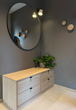 Kreo utviklet også møbleringsplaner som optimaliserte arealene og gjorde det enklere å se hvordan både fast og løst inventar ville fungere i praksis. Vi kom med forslag til nye møbler som passet til det som skulle bli med på flyttelasset. Det gjør at interiøret fremstår som helhetlig, funksjonelt og tilpasset familiens behov og personlighet.