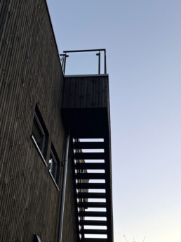 Samtidig som huset ble reist, arbeidet vi med interiørarkitekturen for å sikre at løsningene understøttet familiens behov for bruk av rommene i hverdagen. Mindre justeringer på plantegningen ga mer hensiktsmessige løsninger på både soverom, bad, toalett og garderobe. Noen ganger er det bare flytting av en vegg eller sideforskyving av en dør som skal til, for å få plass til garderobeskapet, en bredere seng, hjemmekontoret eller større plass på toalettet.