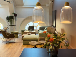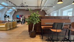 Et frodig samboerskap midt i byen, der Minus 1 sine arbeidsplasser er en integrert del av showrommet til møbelprodusenten Johanson Design.